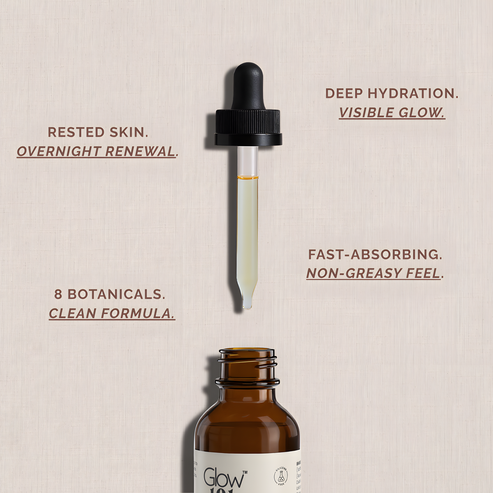 More women are upgrading their night routine with Glow101 Ritual+ Overnight Oil — a clean, lightweight blend of 8 natural plant oils that works while you sleep. Each drop helps soften fine lines, calm uneven texture, brighten tired-looking skin, and lock in hydration — all without feeling heavy, greasy, or clogging.